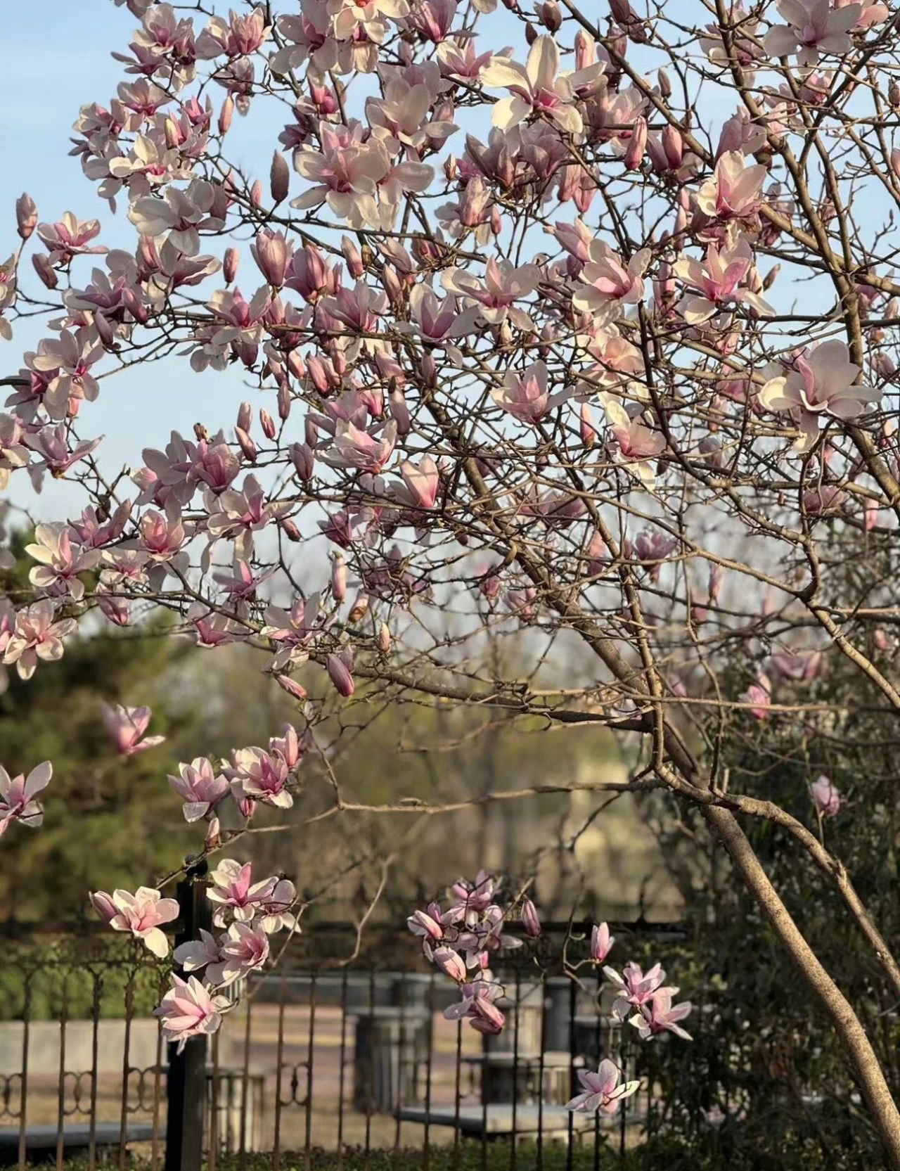 玉兰花开,校园景色美不胜收。 在阳光的照耀下,玉兰花的花瓣显得更加洁白耀眼,与校园里的绿树、青草相互映衬,构成了一幅美丽的画卷。同学们可以在树下散步、读书或者拍照留念,感受春天的气息和校园的美好。